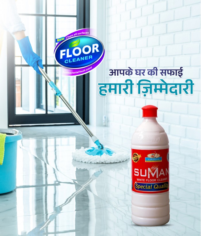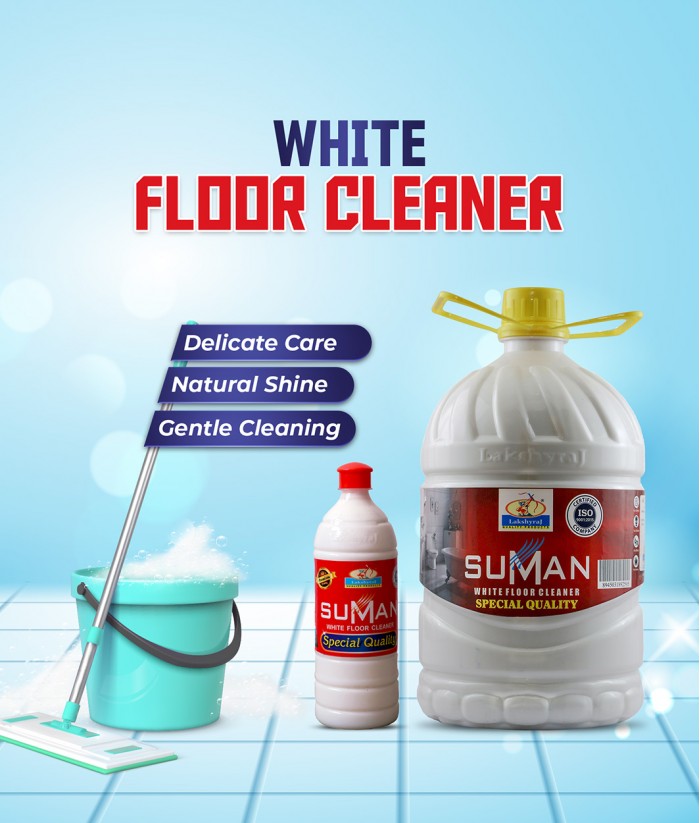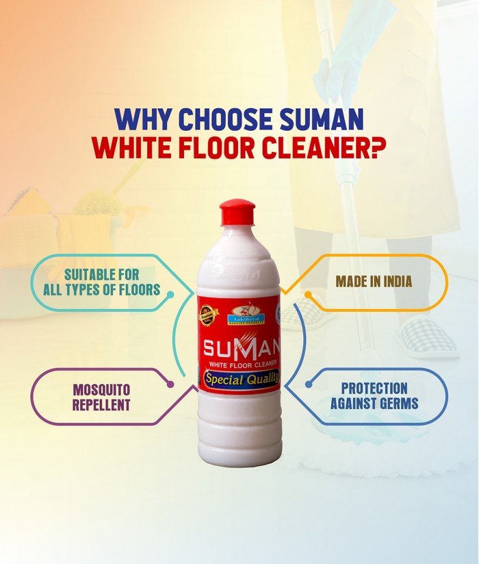 Suman is highly concentrated floor cleaner. Suman keeps floor shining and clean and gives pleasant fragrance. Its gives better result in hospitals and homes. Keeps flies, mosquitoes and insects away.Take 25ml SUMAN White Floor Cleaner and Mix with 5 Ltr water. Mix the solution & Sprinkle it over floor. Then swap the floor with plain water to get better result.Pack Size : 1 Ltr - 20PCs | 5 Ltr - 4PCs..
